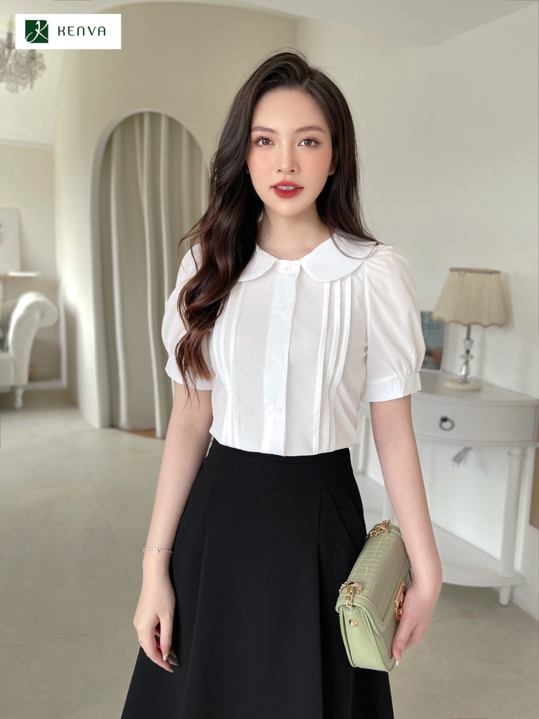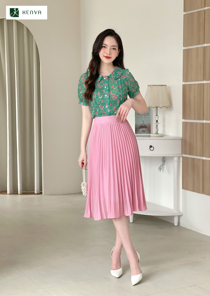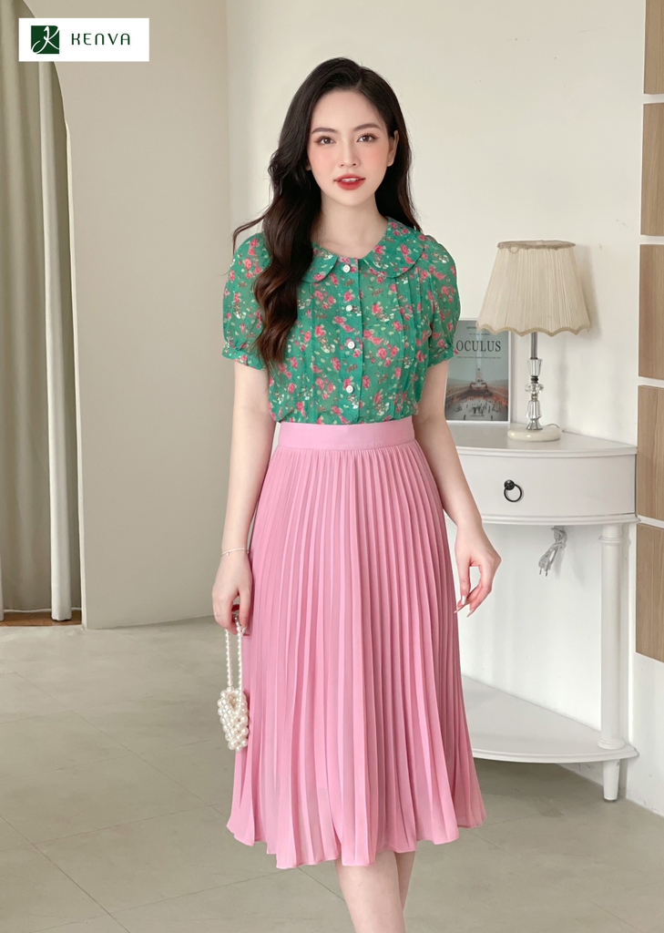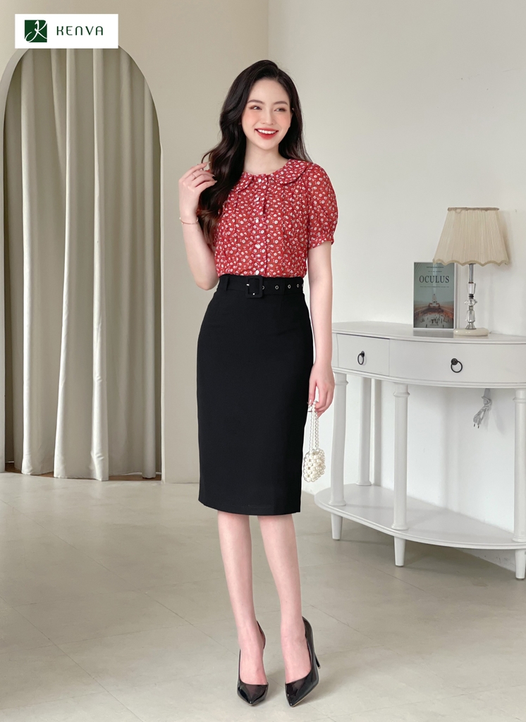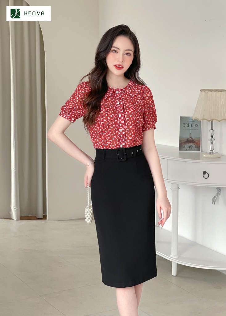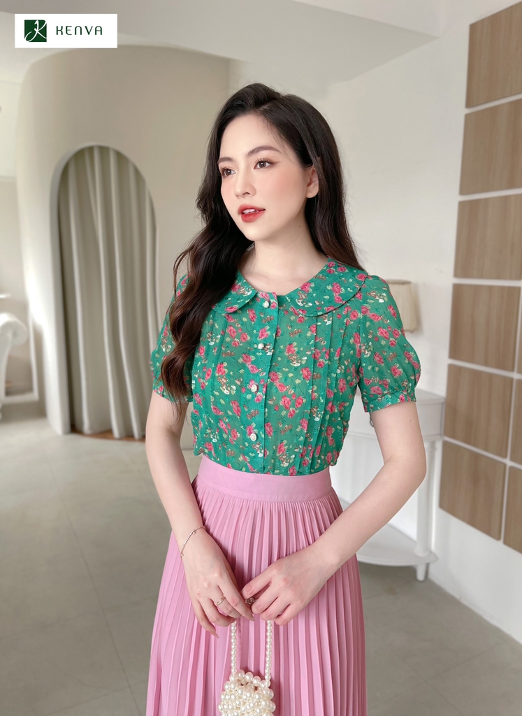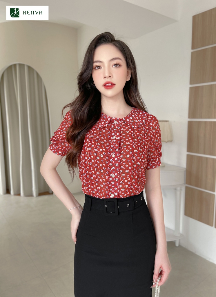 Sơ mi hoa cổ sen diễu thân