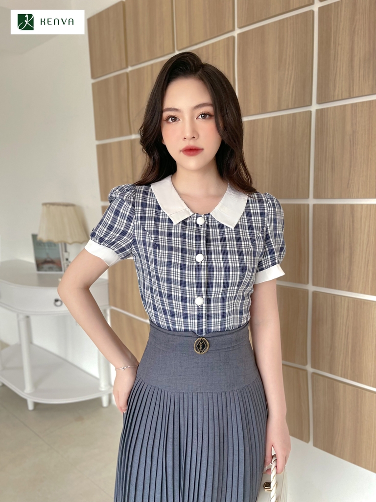 Áo sơ mi kẻ cổ trắng